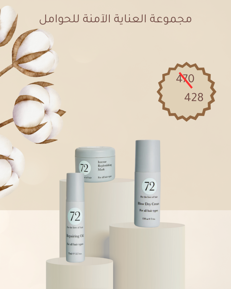 مجموعة العناية العميقة من 72، مصممة خصيصًا لتلبي احتياجات شعرك في مرحلة الحمل والرضاعة، حيث يصبح الشعر أكثر عرضة للجفاف والتساقط.